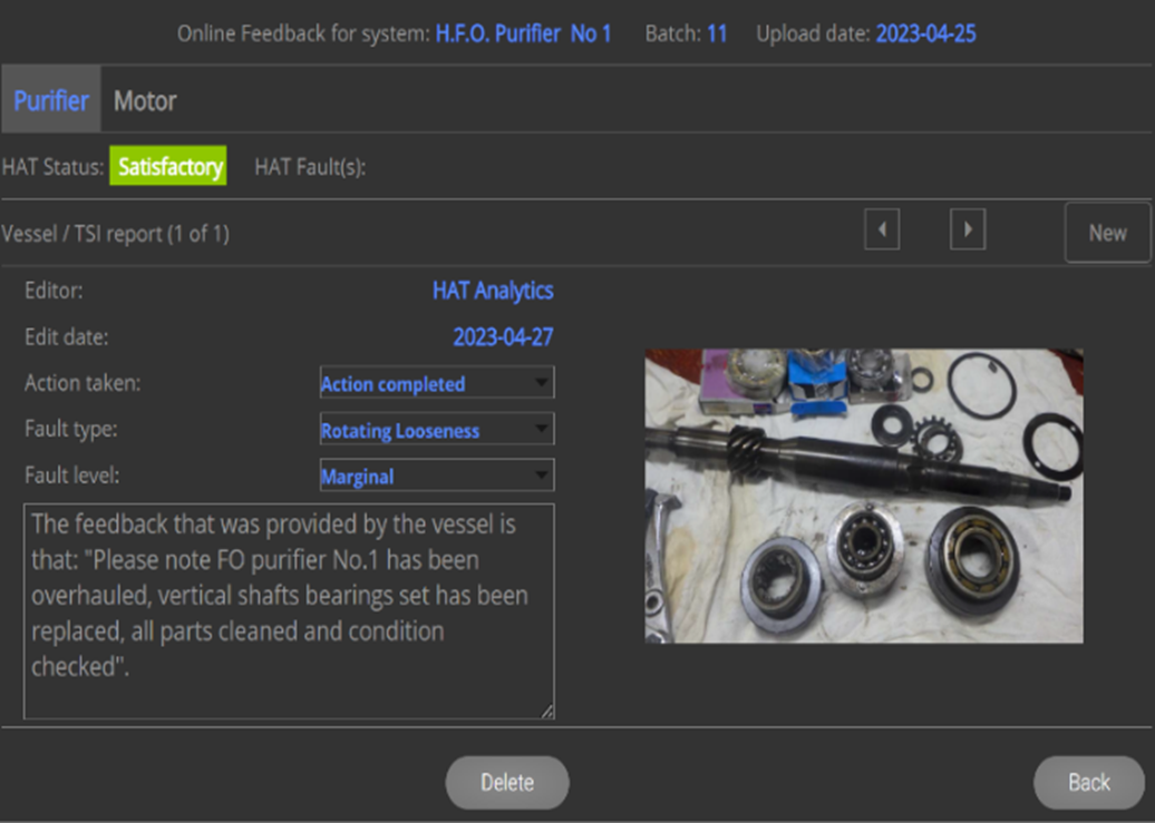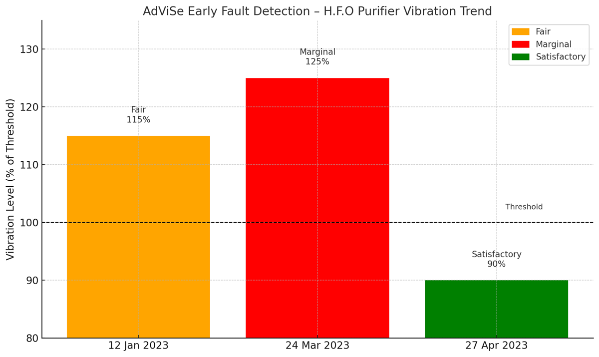 It was an ordinary day in January 2023 when the engine crew conducted routine checks using the AdViSe Handheld system. H.F.O Purifier No.1 showed no visible issues or alarms.